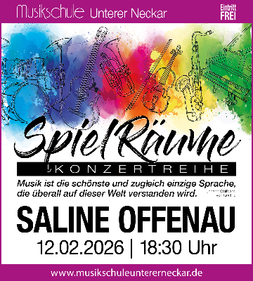 Am Donnerstag, 12. Februar um 18.30 Uhr zeigen unsere jungen Musikerinnen und Musiker beim Konzert aus der Reihe SpielRäume in der Saline Offenau was passiert, wenn sie zusammenkommen und ihre Musik wirklich teilen wollen. Dann entstehen SpielRäume – offen, lebendig und voller Überraschungen. Musik die nicht erklärt, sondern erlebt wird.