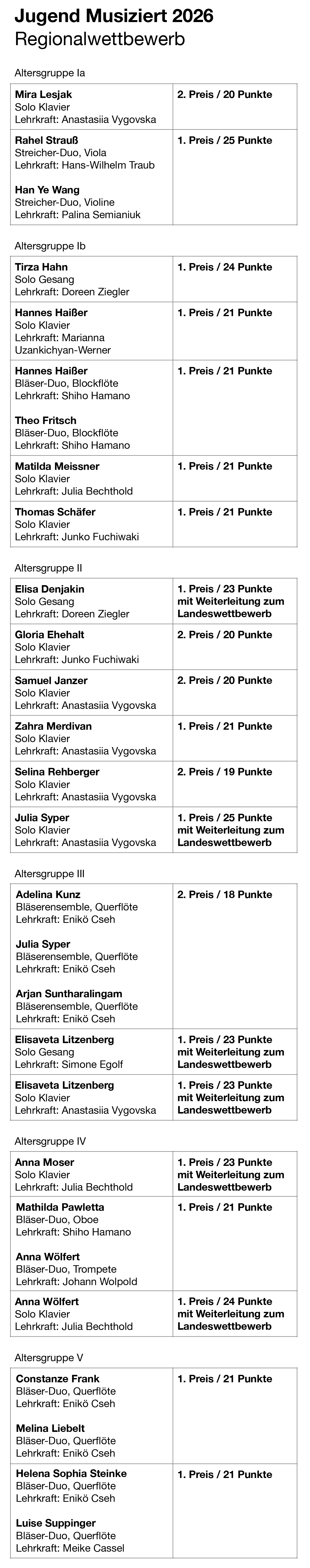 Auch dieses Jahr nahm wieder eine große Anzahl von Schülerinnen und Schülern am Regionalwettbewerb Jugend musiziert im Landkreis Heilbronn teil. Und alle haben hervorragende Preise erreicht.